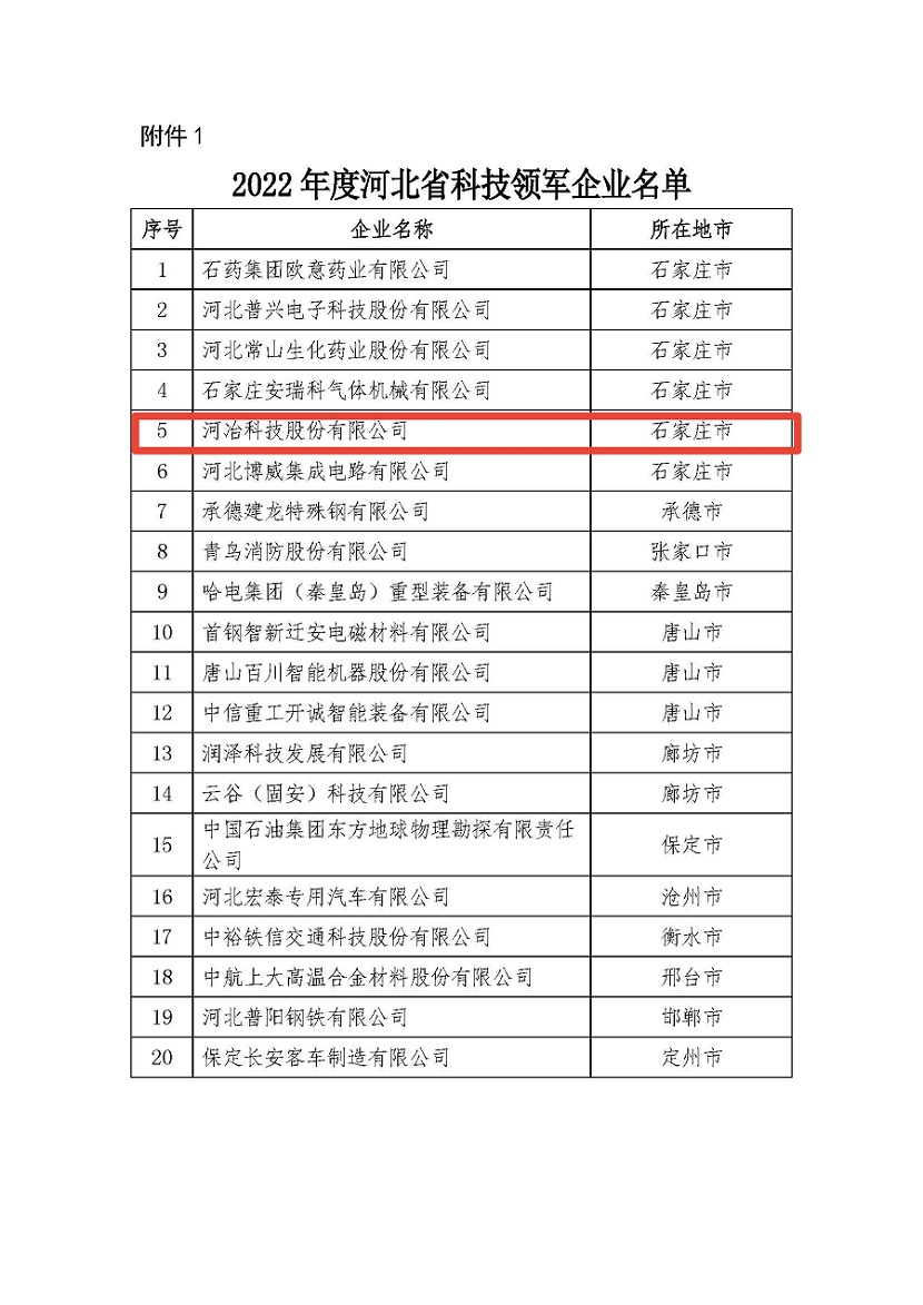 近日,河北省科技廳發布《關于公布2022年度認定河北省科技領軍企業和列入科技領軍企業培育庫企業的通知》,我公司經推薦、評審、公示,成功被認定為河北省科技領軍企業
