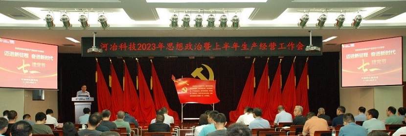 在建黨102周年之際,河冶科技2023年思想政治暨上半年生產經營工作會于77日在公司多功能廳召開。參加會議的有公司黨委委員、經理層、中層干部、黨支部書記、部門骨干、采購營銷人員、團委委員和子公司河冶住商黨總支委員及經理層人員等共計130余人。會議由公司黨委副書記、常務副總經理梁敬斌主持。