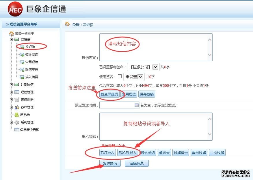 一、短信群發平臺短信內容格式為: