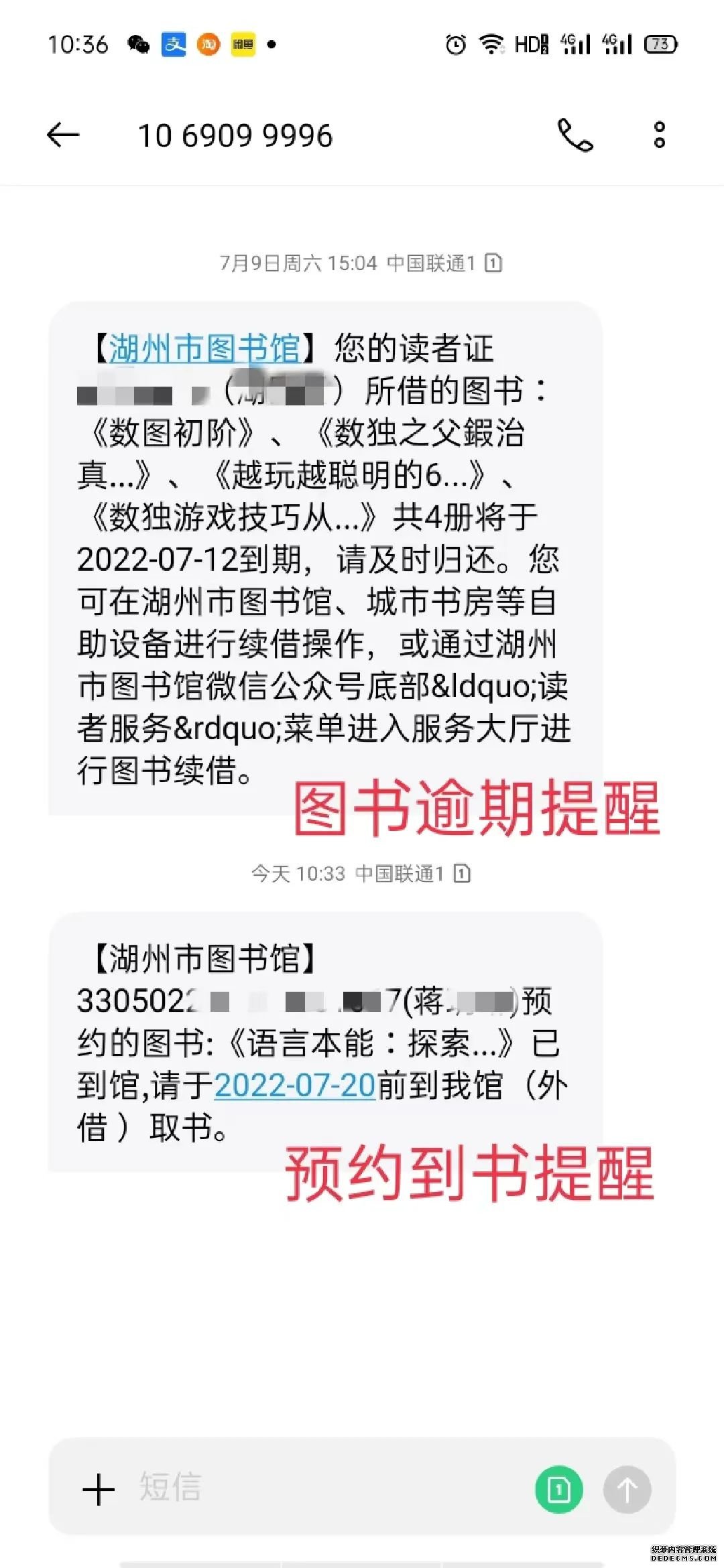 炎炎夏日,烈日當頭,但湖州圖書館工作人員和讀者們近來心情很是美好!因為近期湖州圖書館借助短信群發平臺推出的暖心短信通知提醒服務,圖書歸還、預約取書都能及時同步,受到了好多讀者朋友們的來電表揚。