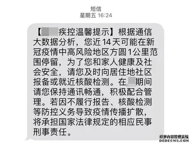 “ 重要提醒:自X月X日以來,在XX公司打工、到過該公司、與公司員工有過近距離接觸或有中高風險區旅居史人員,請......”、“友情提醒!從市外返X來X人員請主動向目的地村、社區或酒店報備.......”這是短信平臺結合大數據發送的疫情防控宣傳短信,針對的人群不是本地區所有人,而是根據用戶行程軌跡篩選出來的特定手機用戶群體。