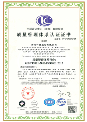 200010月,公司依據ISO90011994標準,建立了質量管理體系,通過了中國機械工業質量體系認證中心(現中聯認證中心北京有限公司)認證;